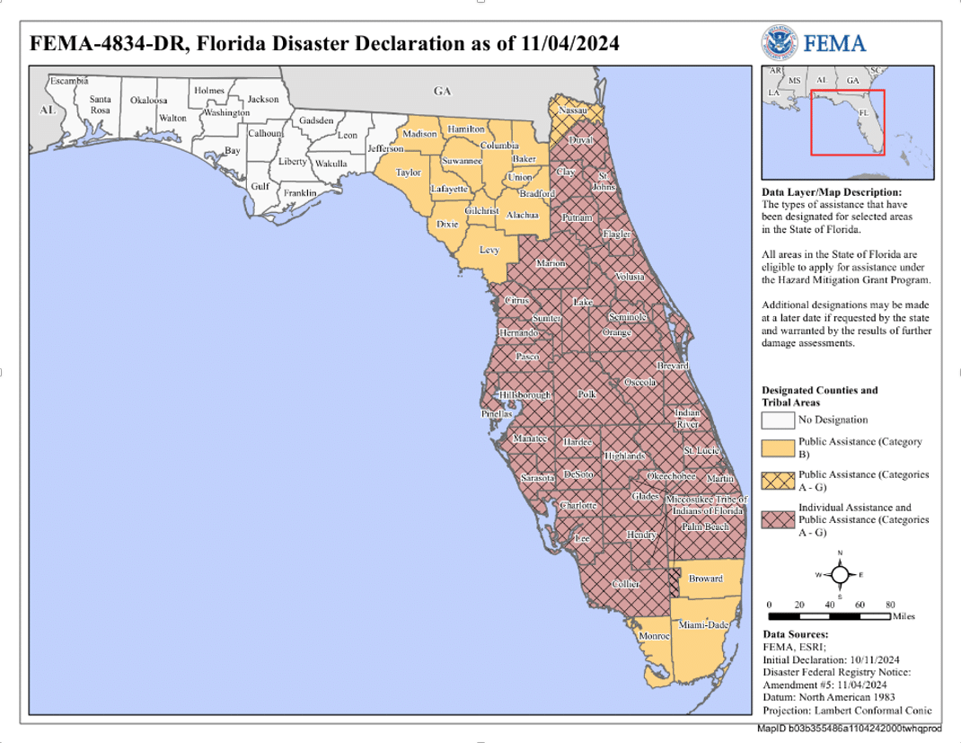 The first provision to highlight, section 28, is more limited in the time period it applies to. It bars local governments within counties that were listed in Federal Disaster Declarations for recent Hurricanes Debby, Milton, and Helene (essentially the entirety of the state) from making the aforementioned comp plan and land development code changes until October of 2027. This section is also retroactive to changes made since August 1 of 2024.