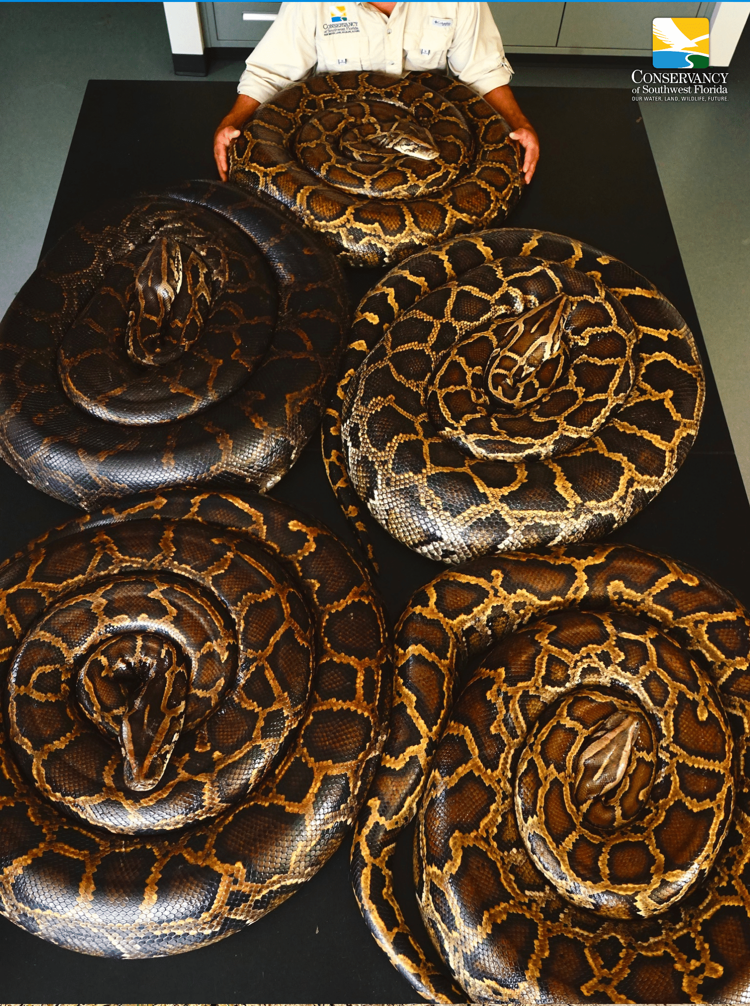 A newly published scientific study reveals that invasive Burmese pythons do more than threaten native wildlife in South Florida; they may also be altering how plants spread across the landscape. Biologists Ian Bartoszek and Ian Easterling on the Conservancy of Southwest Florida’s python team are pleased to have contributed field data to “Double agents: invasive Burmese pythons and Argentine black and white tegus as potential seed dispersers in South Florida,” published in the Journal of Zoology in 2025.