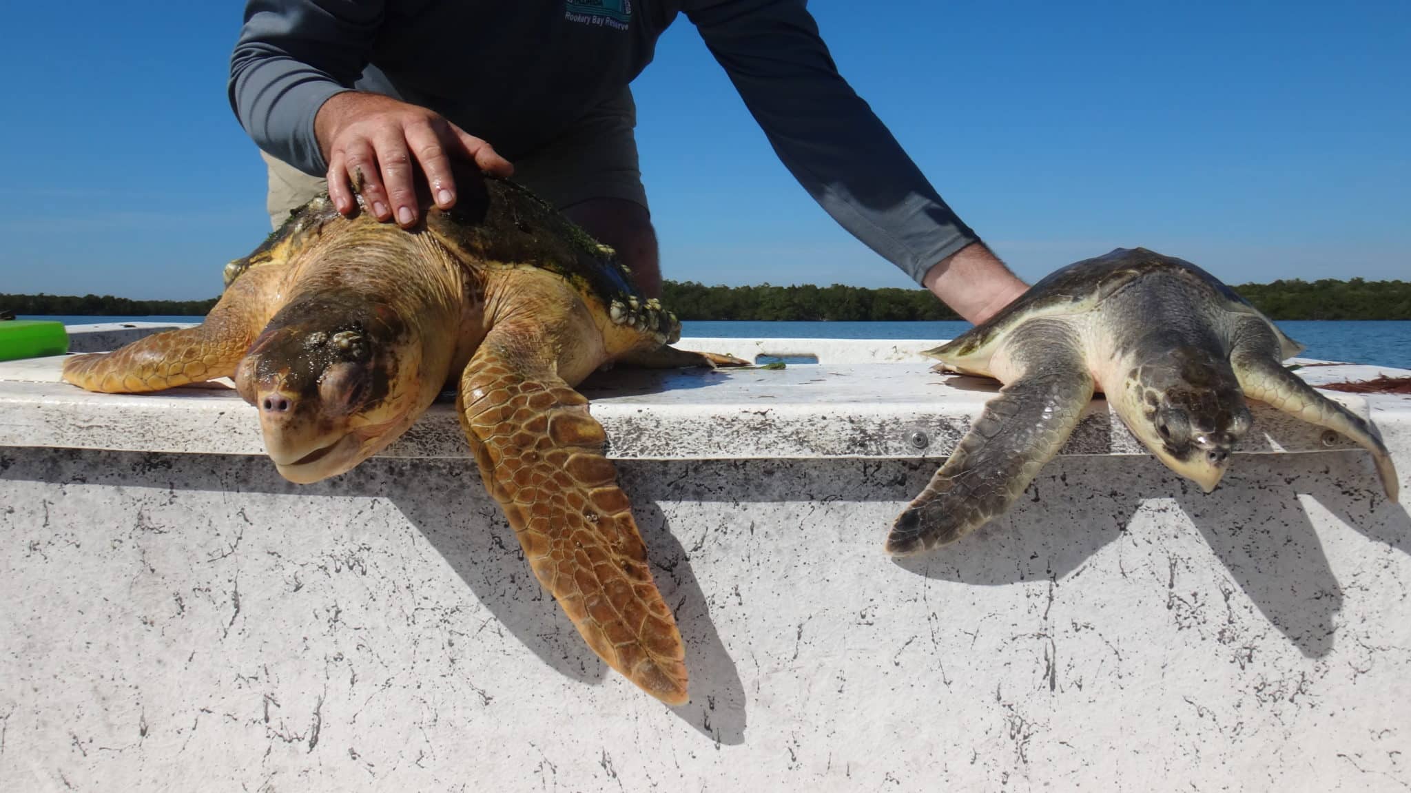 Marine turtle research activities and photos by the Conservancy of Southwest Florida were conducted under National Marine Fisheries Service permit 22123 and Florida Fish and Wildlife Conservation Commission permit MTP-136, and those by the New England Aquarium were conducted under United States Fish and Wildlife Service permit ES69328D.