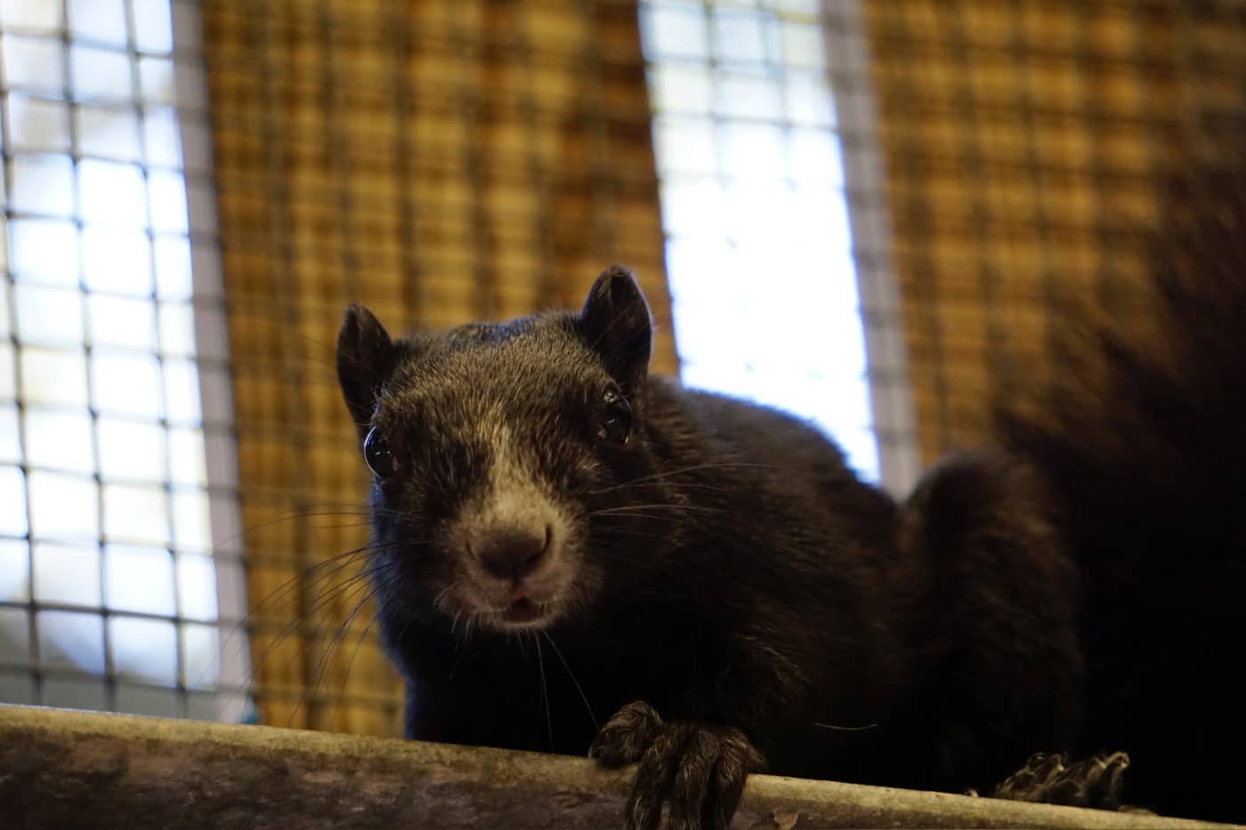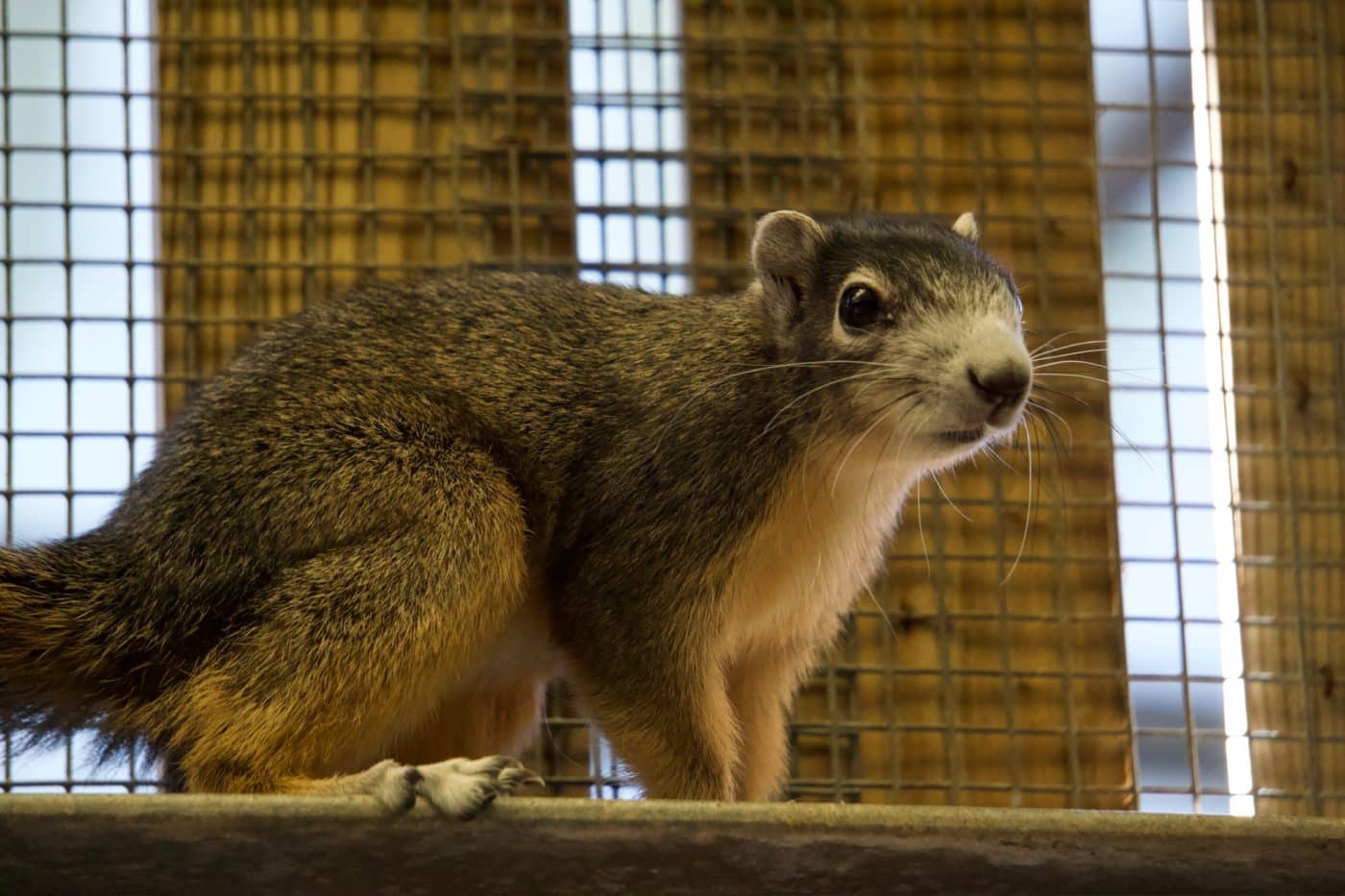 Fox squirrels are known to imprint more easily than gray squirrels, making socialization during rehabilitation especially important. Staff had been actively searching for another rehabilitation facility with a fox squirrel to ensure appropriate pairing, when a second juvenile patient was admitted. The two were housed together, allowing them to develop natural behaviors such as climbing and foraging while reducing stress.