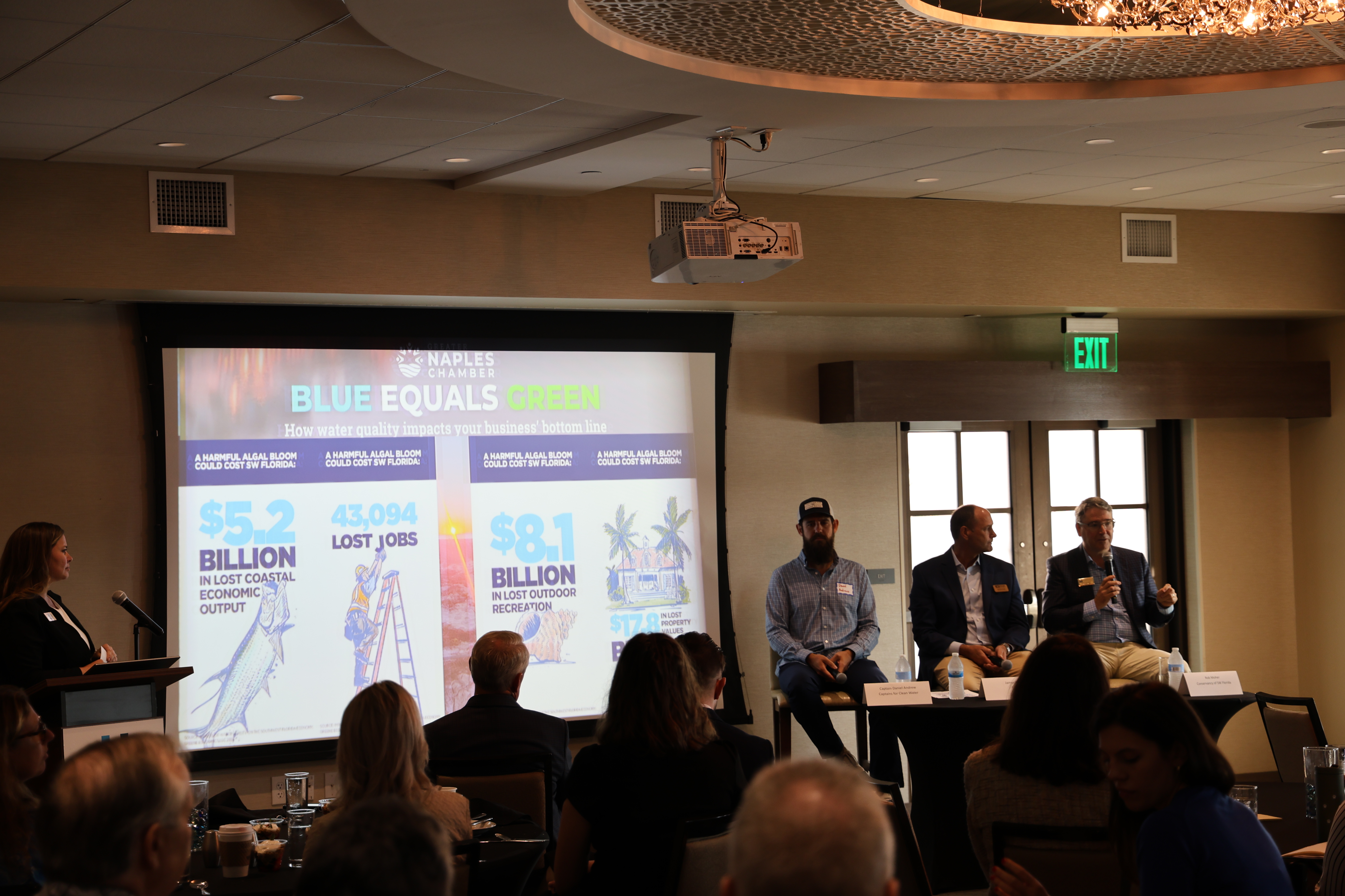 The event was hosted by the Greater Naples Chamber and sponsored by the Collier Community Foundation and held at the Hyatt House Naples – 5th Avenue. The morning begin with a breakfast, opening remarks, and a discussion with three panelists. The panelists were Captain Daniel Andrews, Co-Founder & Executive Director, Captains for Clean Water, James Evans, CEO, Sanibel Captiva Conservation Foundation (SCCF) and Rob Moher, President & CEO, Conservancy of Southwest Florida.