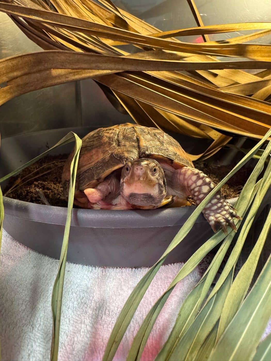 The Florida box turtle was kept as a pet for 3 years and was in another person’s care prior to that. While the history of the box turtle is unknown, based off of our full exam, our professional wildlife rehabilitators could tell it was receiving improper care.